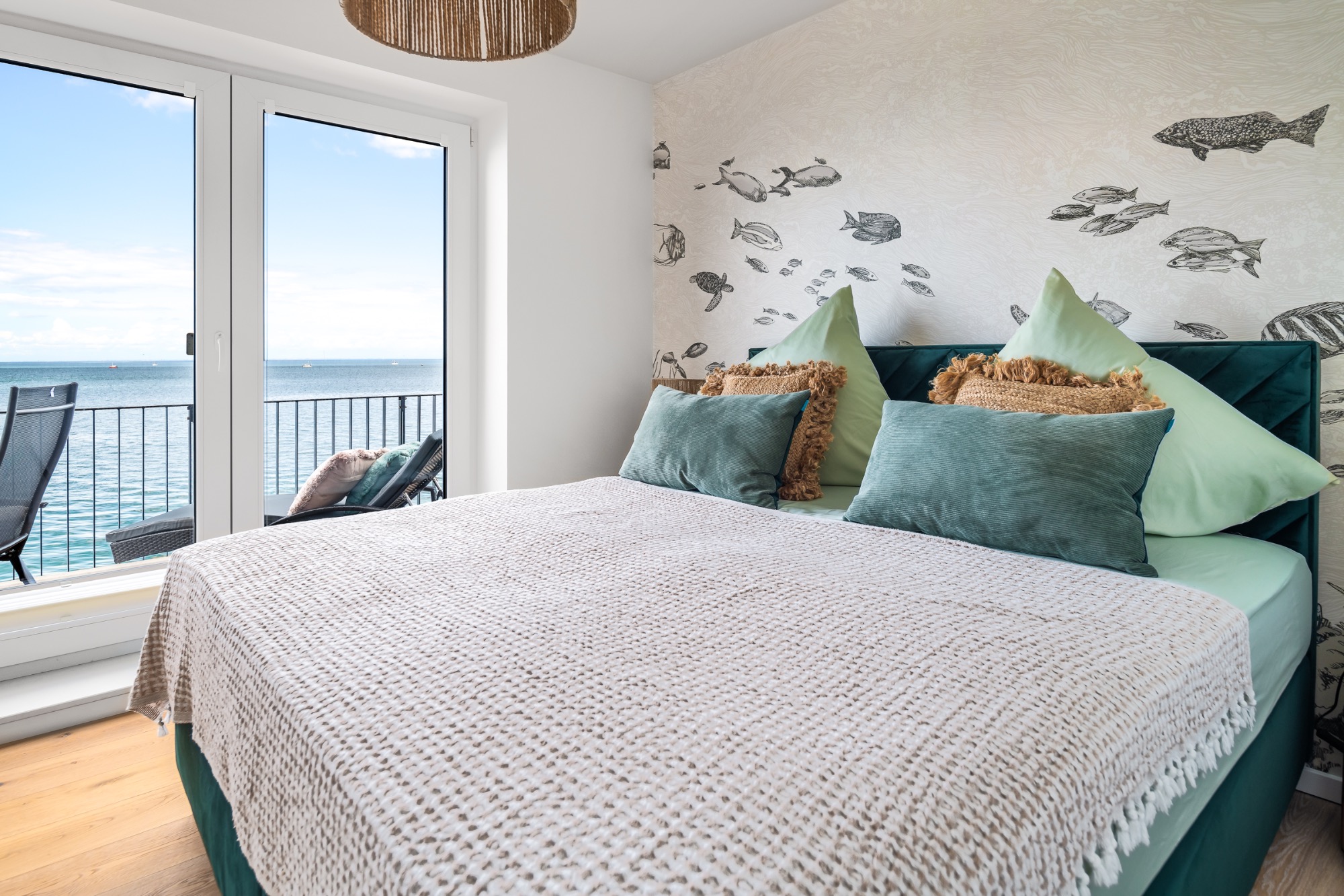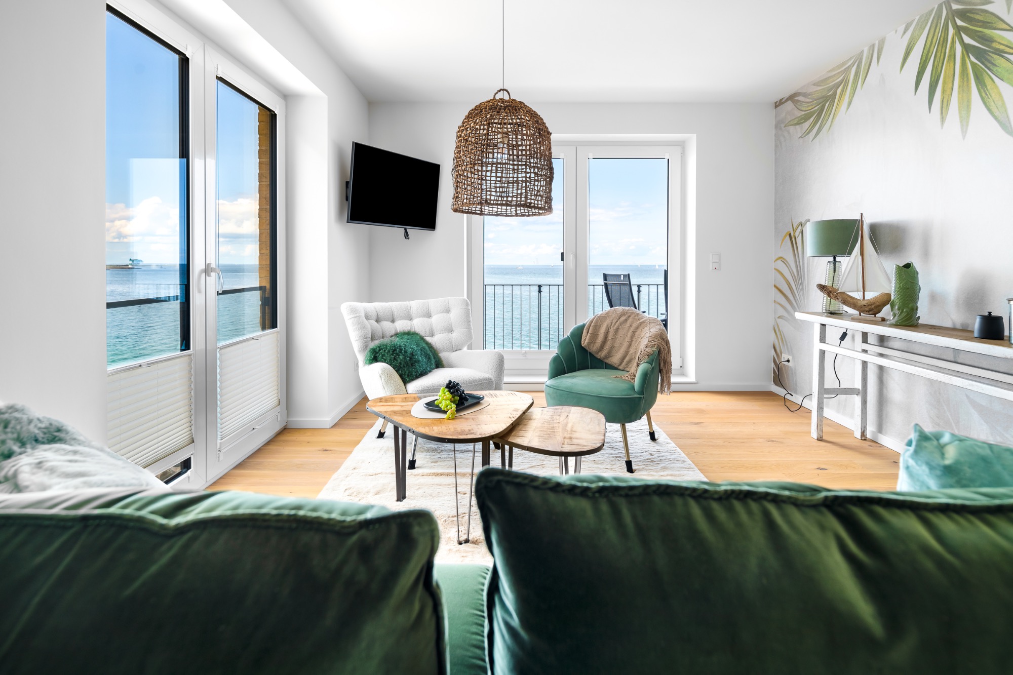 Atmen Sie frische Ostseeluft in bequemen Outdoormöbeln auf Ihren zwei Balkonen mit Blick über die Ostsee oder zum Weidefelder Strand.
