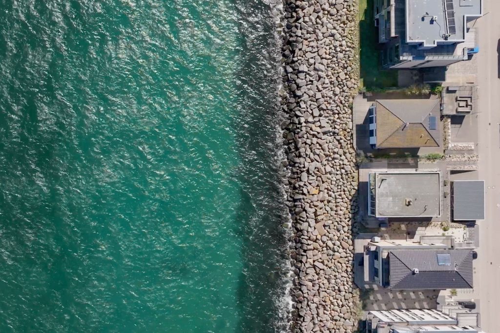 Die Ferienwohnung Blue Paradise liegt im 1. OG eines dreigeschossigen Apartmenthauses auf einer in die Ostsee gebauten Mole eines alten Marinegeländes.