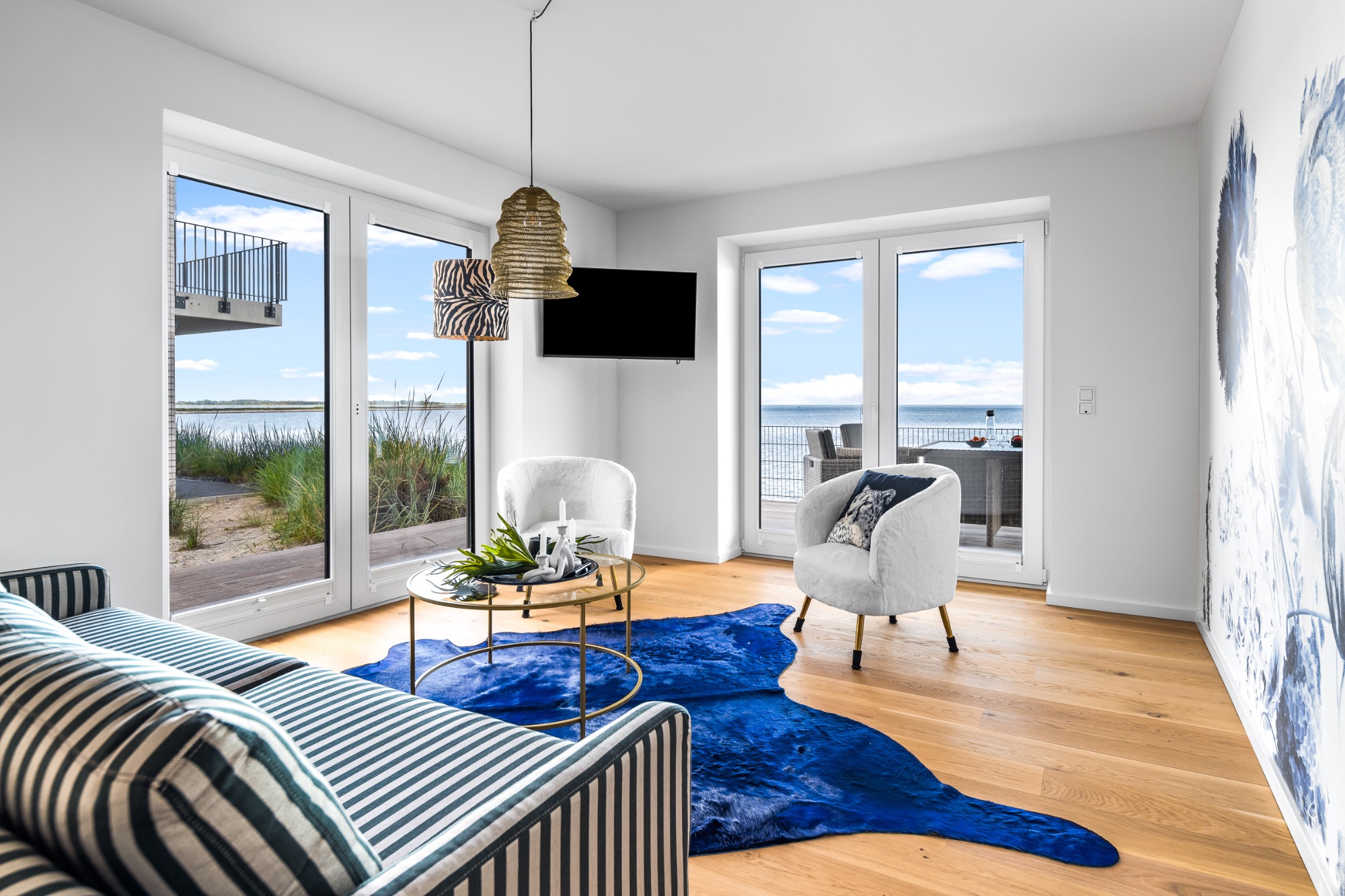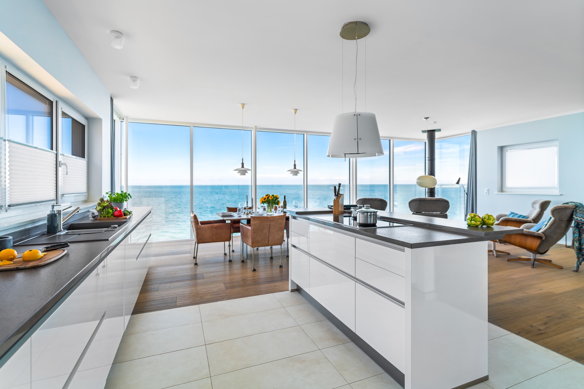 Freuen Sie sich auf einen großzügigen Wohnbereich im ersten Obergeschoss mit dem größten Panoramafenster im Ostseeresort Olpenitz!